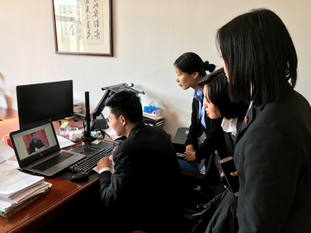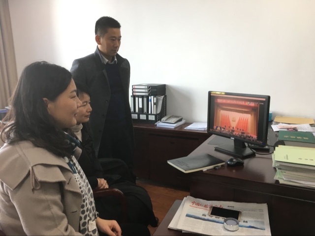 县法院干警们在办公室收看十九届中纪委二次全会报道,大家纷纷表示,要认真学习贯彻会议精神,以重整行装再出发的心态,提升党性修养、强化自我约束、坚持为民司法,努力打造新时代的“清廉法院”。