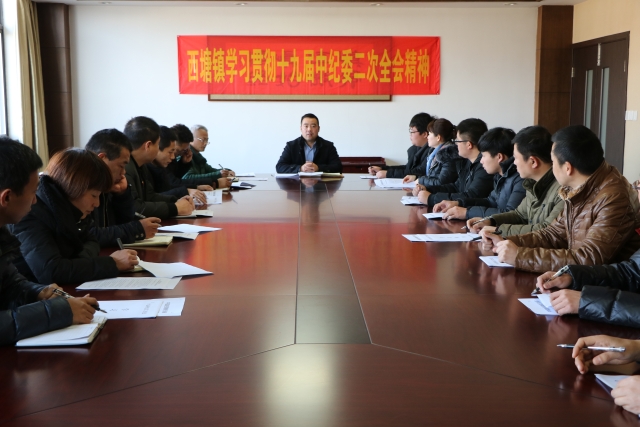 西塘镇纪委组织召开镇纪委委员、村(社区)纪检干部会议学习贯彻十九届中纪委二次全会精神。大家纷纷表示,要按照习总书记的重要讲话精神和全会的部署,继续保持严惩腐败的高压态势,进一步增强廉政教育的实效性、针对性,建立健全制度执行监督和问责机制,深化廉政风险防控。